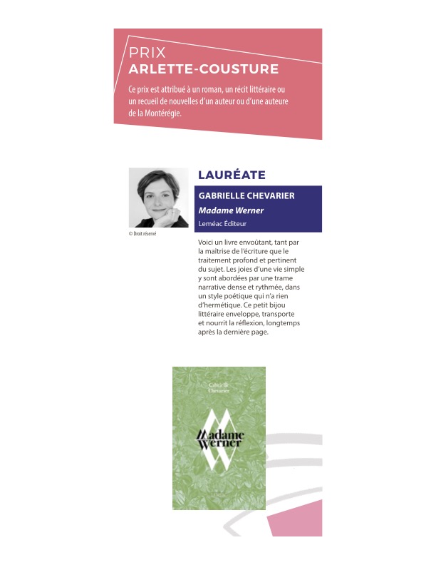 Guimont, Alexandra. « Madame Werner », dans Nuit blanche, magazine littéraire, no 171, été 2023.