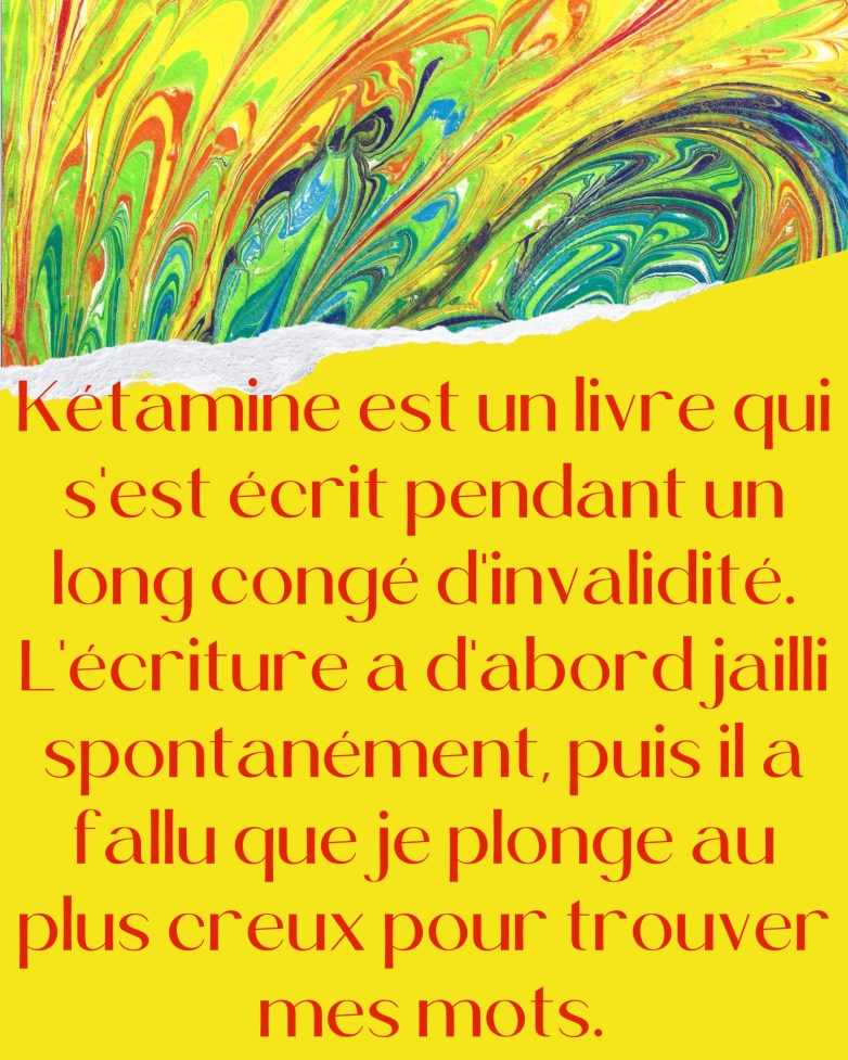 Aux prises avec d’aliénantes douleurs chroniques que rien ne soulage, Gabrielle Chevarier accepte, à l’invitation de son médecin, d’essayer un traitement encore expérimental : la kétamine. Cette drogue permettrait d’apaiser les symptômes du corps, mais aussi d’ouvrir un sentier dans l’indicible, d’approcher ce qui se situe en deçà du langage.