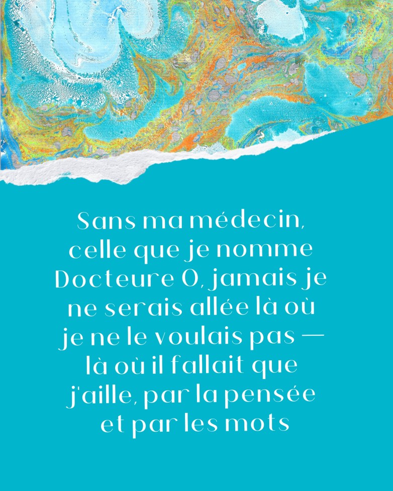 Pour m’endormir, adolescente, je déshabillais mentalement mon âme, os par os, comme les pelures d’une orange, et arrivée aux vertèbres il fallait tirer plus fort, les arracher. Je n’avais plus de dos. J’étais libre, au seuil du sommeil. Une pensée soudain me réveillait : sans colonne ni cage thoracique ni muscles ni rien, existais-je encore? Où se trouvait donc ce que j’appelle « moi »?